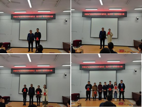 比赛进行了现场打分,结合笔试成绩最终评选出了本次大赛的一、二、三等奖,张世浩、梁贺敏老师荣获本次比赛一等奖;程文浩、李炎洁等6位老师荣获本次比赛二等奖,李晓娅、刘丽萍等11名老师荣获本次比赛三等奖。学院领导为各位获奖选手颁发荣誉证书并一起合影留念。
