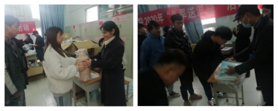 此次“冬季送温暖”活动,包括向困难家庭学生送棉衣、发放口罩、暖瓶、生活补贴等。