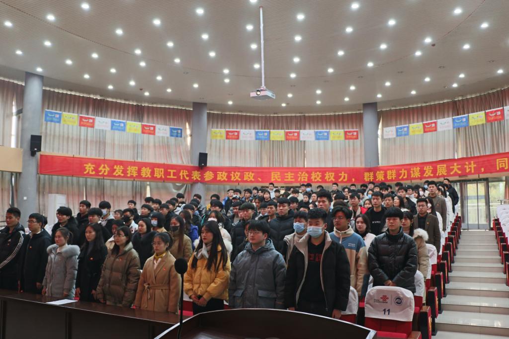 为纪念“一二·九”运动85周年,激发我院青年的历史使命感,12月9日下午院团委在学院第二报告厅隆重举行了纪念“一二·九”运动新团员入团宣誓仪式主题团日活动。学院纪委书记张明慧、团委书记杨红培团委组宣部长丁姝、团委全体老师、各系团总支书记、学生会全体成员及新老团员代表100余人参加了本次活动。