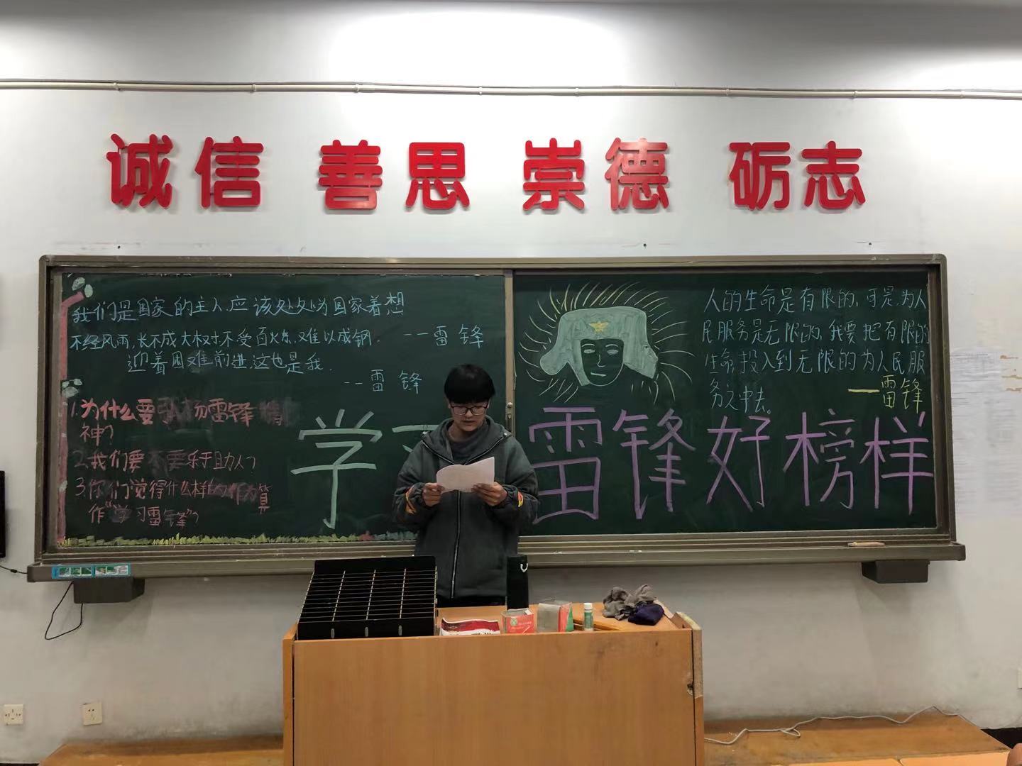 在团课过程中,各班级气氛活跃,活动中大家一起回顾雷锋的生命历程,体会雷锋的精神内涵,一起讨论了身边的雷锋。雷锋他以"钉子"精神,刻苦学习马列主义、毛泽东思想,坚持理论联系实际,努力实践,因而具备了全心全意为人民服务的无私忘我的奉献精神值得我们学习。虽然雷锋已经去世,但是雷锋永远活在亿万人民心中!他度过了只有短短的22个春秋,可是他那闪耀着共产主义思想光辉的崇高精神却长留人间。他的爱憎分明、言行一致、公而忘私、奋不顾身、艰苦奋斗、助人为乐,把有限的生命投入到无限的为人民服务之中去的崇高精神,集中体现了中华民族的传统美德和共产主义道德品质,另人敬佩。