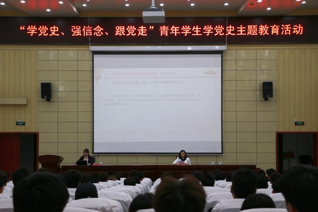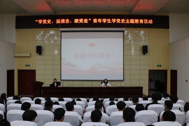 讲座中,卫菁华科长围绕中国共产党的历史分期、中国共产党在许昌的百年历程以及带给我们的启示三个方面,以“四个时期、四件大事、两次飞跃”纵向讲解,以“许昌第一个党小组、第一个党支部、第一个县委”横向铺开,引经据典、脉络清晰,内容新颖、史料翔实,将中国共产党在许昌的奋斗史、建设史、改革史、辉煌史按照时间节点依次呈现出来,深入浅出地讲明了百年历程带给我们的启示。为全体青年学生深刻理解中国共产党初心和使命的丰富内涵、深入领会习近平新时代中国特色社会主义思想,提供了有力指导和帮助。