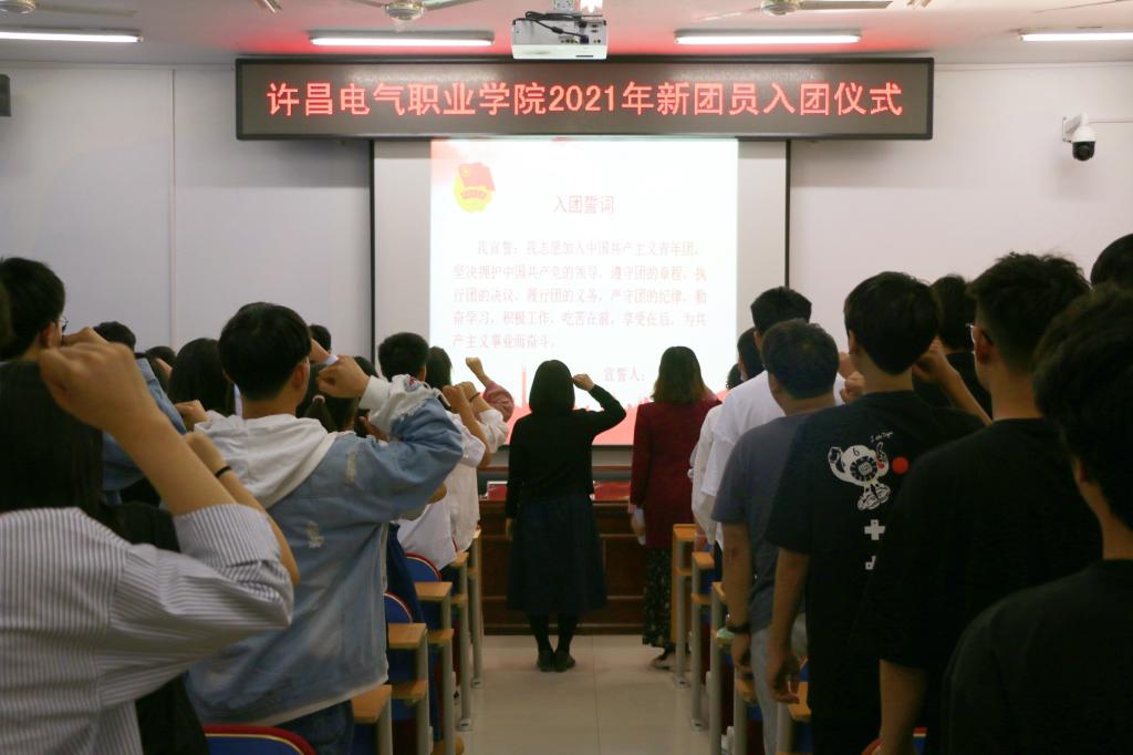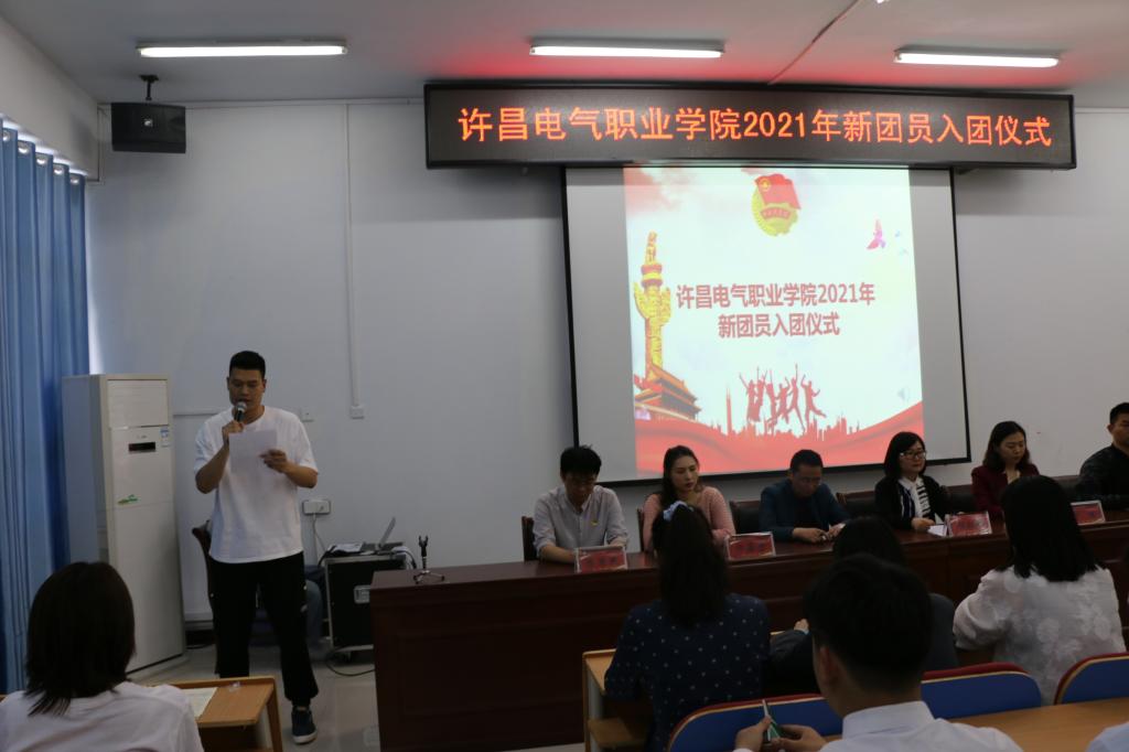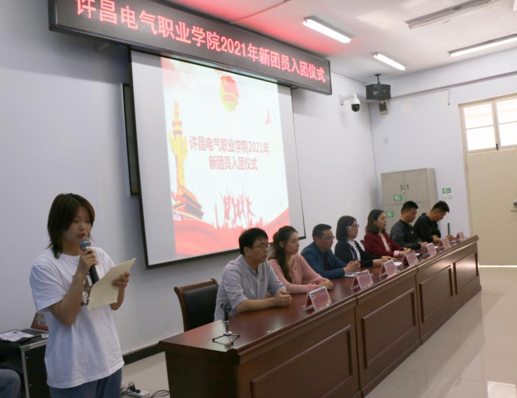 仪式现场,院团委张开智老师带领新发展团员庄严宣誓,在场全体人员重温入团誓词。随后,电气工程系团总支书记杜瑞涛为全体团员解读《团章》中团员的义务和权利。