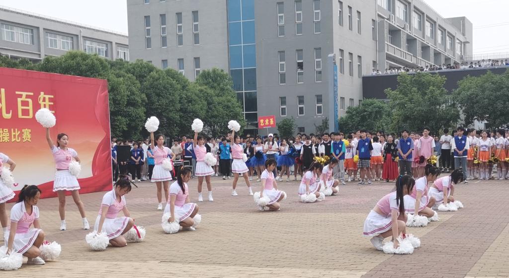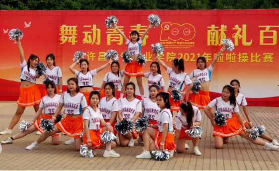 为庆祝中国共产党建党100周年,2021年5月12日下午, 我院在中心广场上举行了以“舞动青春 献礼百年”为主题的2021年第二届啦啦操比赛。本次比赛由学院学生处主办,院大学生自我管理委员会承办。经各系部选拔,全院共有8只代表队110余名运动员和指导老师参加了本次比赛,各系部组织师生进行了观看。