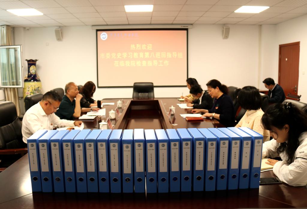 在学院行政楼第二会议室,第八巡回指导组听取了纪委书记张明慧关于我院党史学习教育工作开展情况的汇报,并观看了学院最新录制的短片《我爱你中国》。第八巡回指导组高度肯定了我院党史学习教育工作,称赞我们工作开展的扎实有效,不仅学院领导高度重视,基层党组织也积极主动,各项活动开展的有声有色、丰富多彩,各类材料准备的严谨细致、规范有序。在党史学习教育中注重发挥新媒体平台的作用,充分利用线上资源拓宽“我为师生办实事”的渠道;注重发挥基层党组织的主观能动性,创新方式方法,开展了多项成效显著又广受师生欢迎的特色活动;注重顶层设计引导,各项规章制度、周报简报等体制建立的相对完善,整体工作推进有思路有方法。关于下一步工作,要注意建立长效机制,推进党史学习教育工作后续动力充足,保持基层党组织开展专项活动的热情;要将党史学习教育与教育教学紧密结合起来,将党史学习教育融入思政教学,融入日常教学,注重发挥党史学习教育培根铸魂的作用。