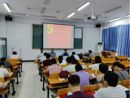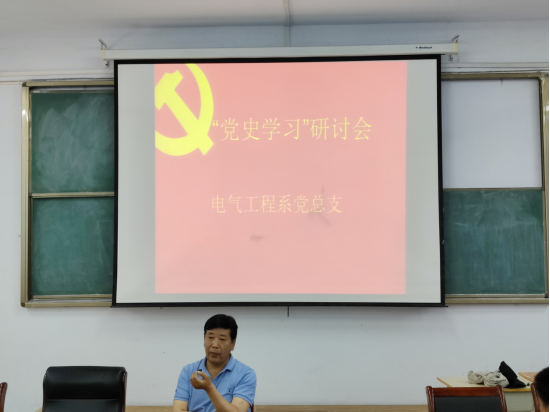 刘院长首先肯定了电气工程系近期党史学习的工作。自从3月27号学院召开全院动员部署大会以来,电气工程系迅速召开学党史推动会,制定详细的学习计划,有条不紊的将学党史行动落到实处,全系党员师生扎实完成规定动作,同时开展了学党史线上研讨会、唱红歌、观看红色电影等特色活动,将系部党史学习的工作稳步向前推进。他指出系部要在学党史活动中走在全校前列,虽然平时教学任务繁重,但是系部师生党员仍要抽出时间完成党史学习任务,深入挖掘党史学习中蕴含的思想精神,将党史学习做实、做细、做到位。
