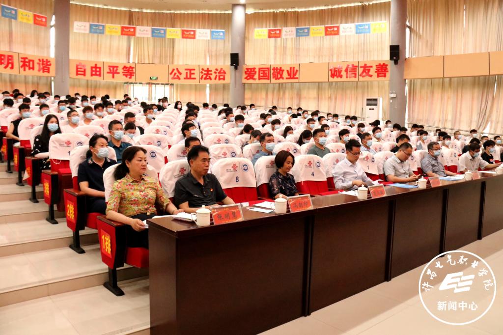 6月17日上午,许昌电气职业学院生态产业(无废城市)学院成立大会在学院二期第二报告厅举行。许昌市人民政府副市长李海峰,中国高科集团总裁朱怡然,许昌市人民政府办公室四级调研员李孝,中国高科集团运营中心总经理王春雨等嘉宾受邀出席活动,学院党委书记彭占亭,副院长 商淑敏、刘涛、冯朝印,党委委员、工会主席张勇,党委委员、纪委书记张明慧,学院相关部门负责人、系部师生代表350余人参加此次活动。活动由学院院长杨德岭主持。