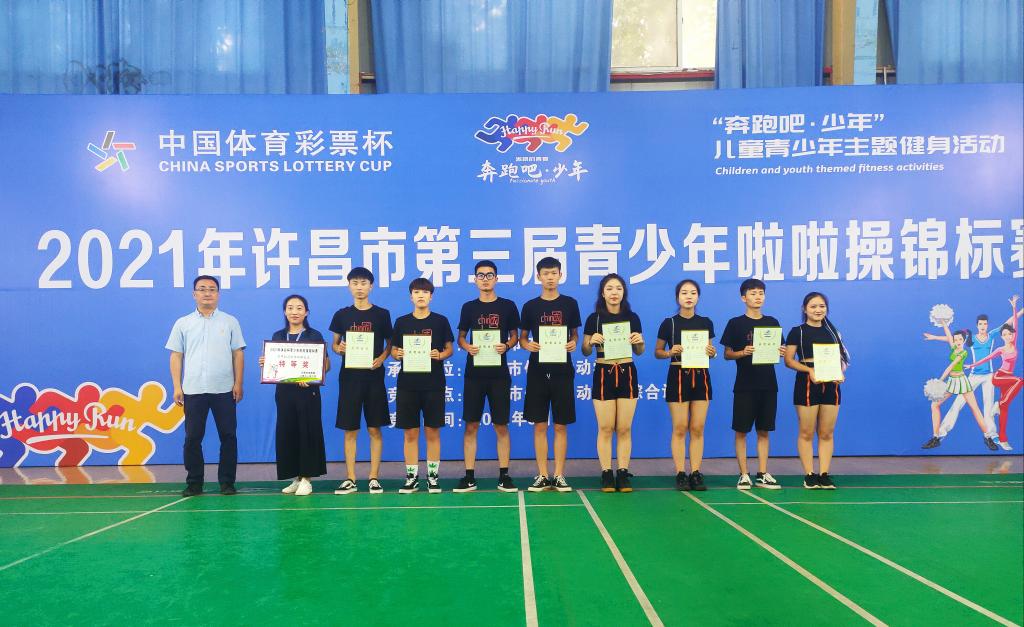 6月19日在2021年许昌市“中国体育彩票杯”第三届青少年啦啦操锦标赛中,许昌电气职业学院啦啦队荣获公开大学组花球自选套路比赛特等奖!