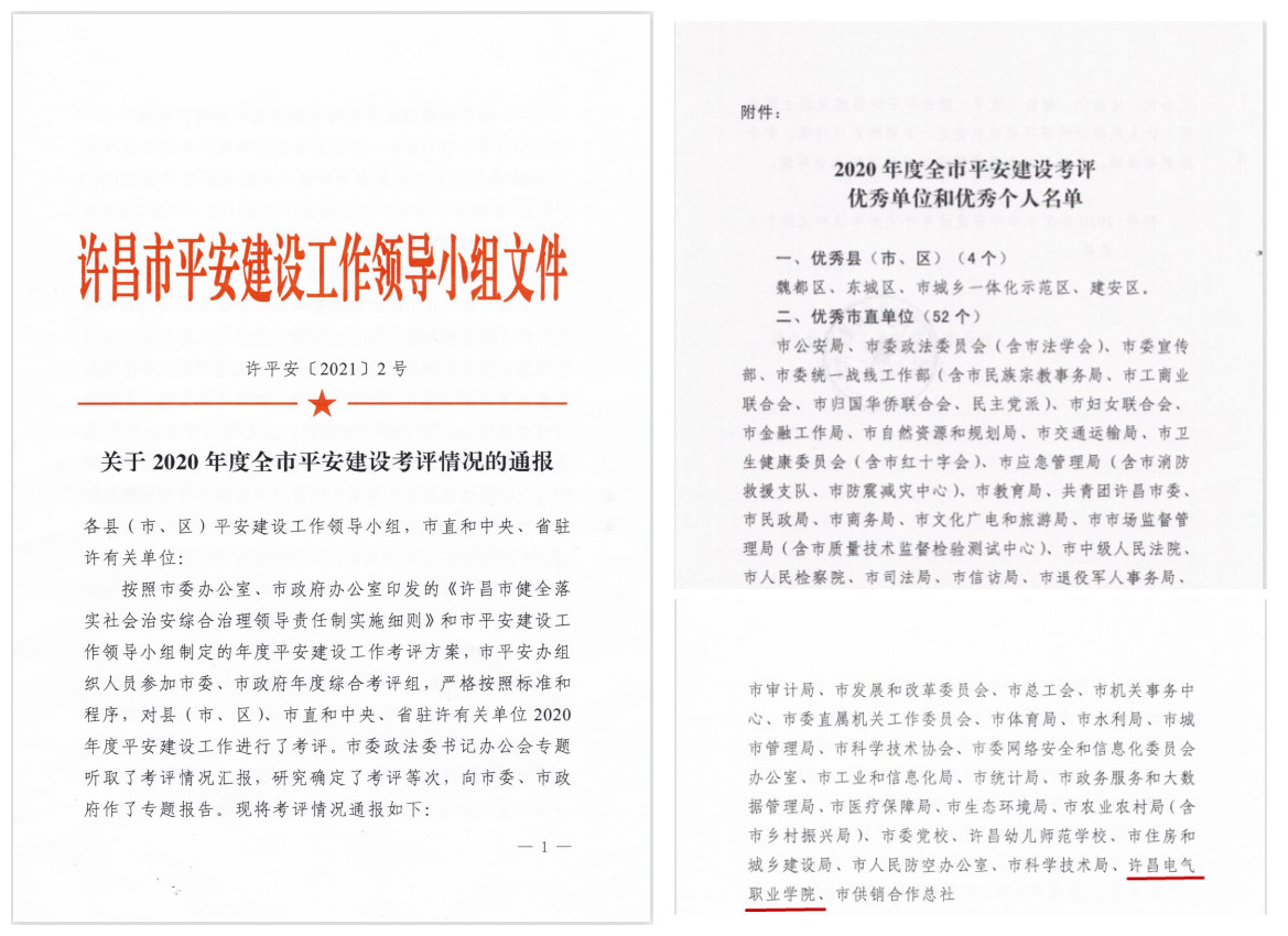 近日,许昌市平安建设工作领导小组发布《关于2020年度全市平安建设考评情况的通报》,我院获评全市“平安建设优秀单位”荣誉称号。
