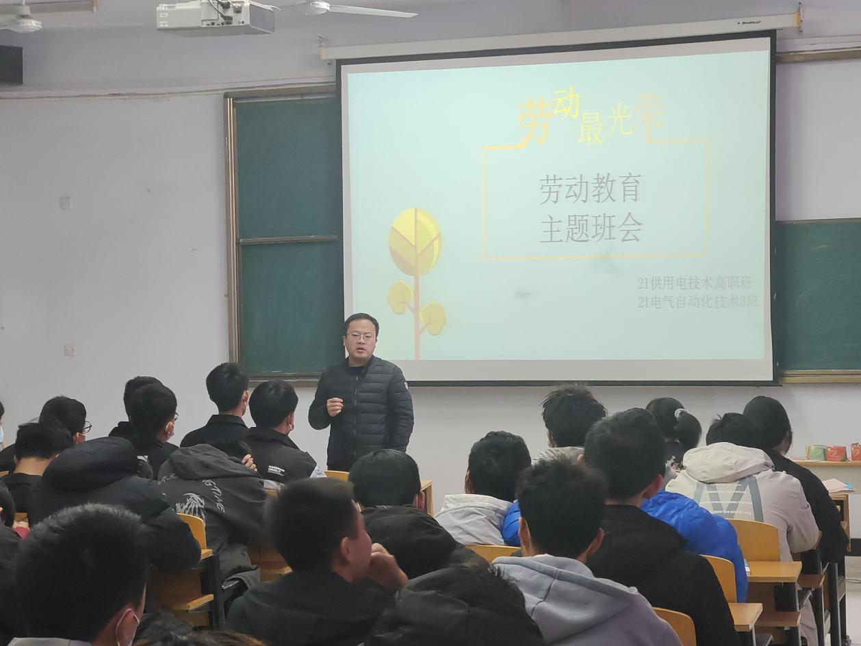 电气工程系在疫情防控等各项工作中注重发挥专职辅导员的桥梁纽带作用和“专职”作用,聚焦学生管理方方面面,爱岗敬业、关爱学生、关注学院发展,充分发挥主观能动性。在这次疫情防控和文明校园复检过程中,因势利导,引导学生加深对劳动内涵的认识,通过“劳动教育”主题班会、参与实践劳动等形式对大学生进行教育,搭建全员劳动育人阵营、创建全过程劳动育人模式、组建全方位劳动育人机制,共同修好集“人人劳动、时时劳动、处处劳动”为一体的“快车道”,坚持育人导向,突出价值引领,引导大学生树立正确的劳动观,崇尚劳动、尊重劳动。