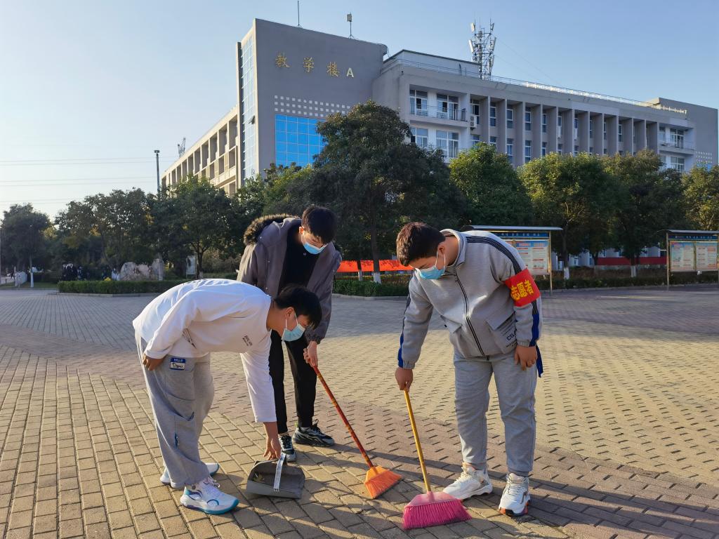 为筑牢校园疫情防控的安全防线及更好的开展文明校园创建工作,创造干净整洁的生活学习环境,新学期以来学院各系部志愿者坚守在全面整治校园环境卫生行动一线,特别是我院专职辅导员队伍,坚持育人导向,积极推动院系创新管理,用行动诠释了使命和担当。