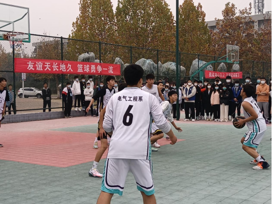 篮球比赛场场扣人心弦,各系代表队员们全力以赴、积极攻防、密切配合,充分展现出高超的球技和顽强拼搏的体育精神,赢得观赛师生阵阵喝彩。赛场外,各系同学有序观看,加油声此起彼伏,体育艺术社团也在决赛用热情的舞蹈为队员们加油助威。