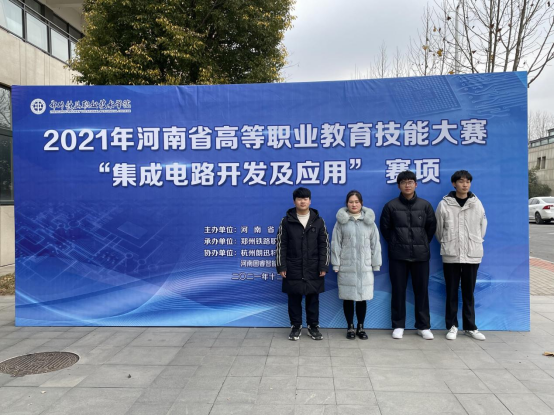 12月24至25日,2021年全国职业院校技能大赛高职组河南省选拔赛“集成电路开发及应用”赛项在郑州铁路职业技术学院举行。我院电气工程系教师王帅军、徐爽指导的学生李康宇、孙一博、沈子扬荣获团队赛一等奖,张冰伟、万梓林、张帅康荣获团队赛三等奖。