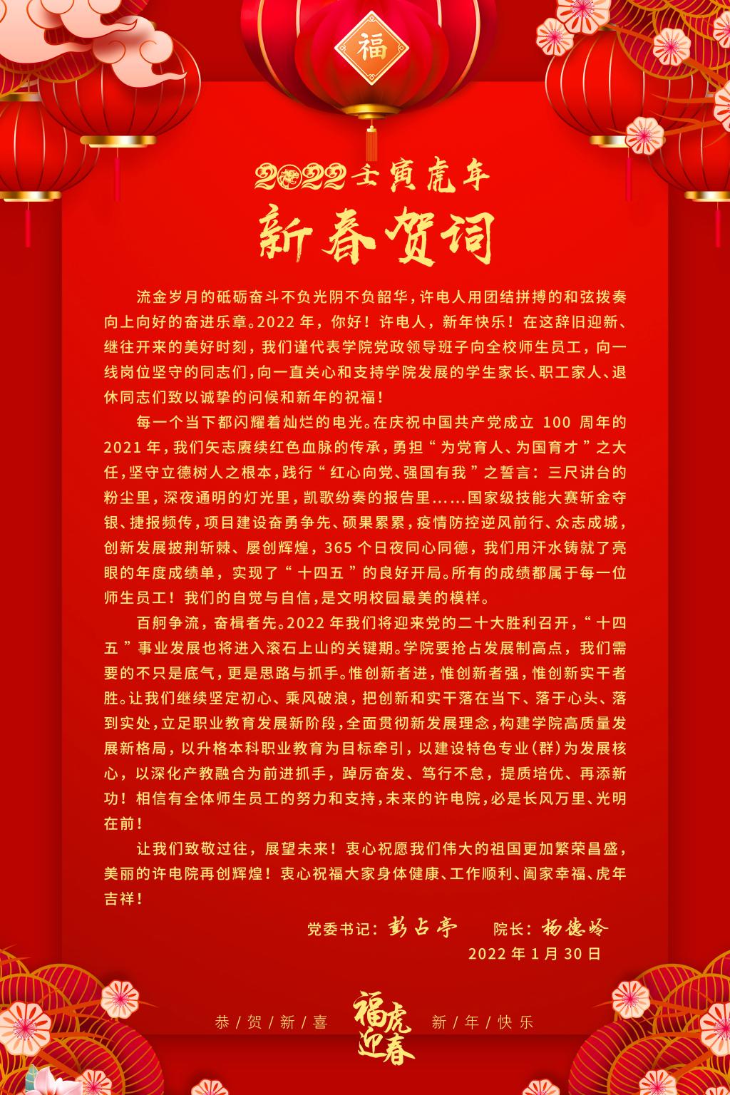 许昌电气职业学院2022年新春贺词