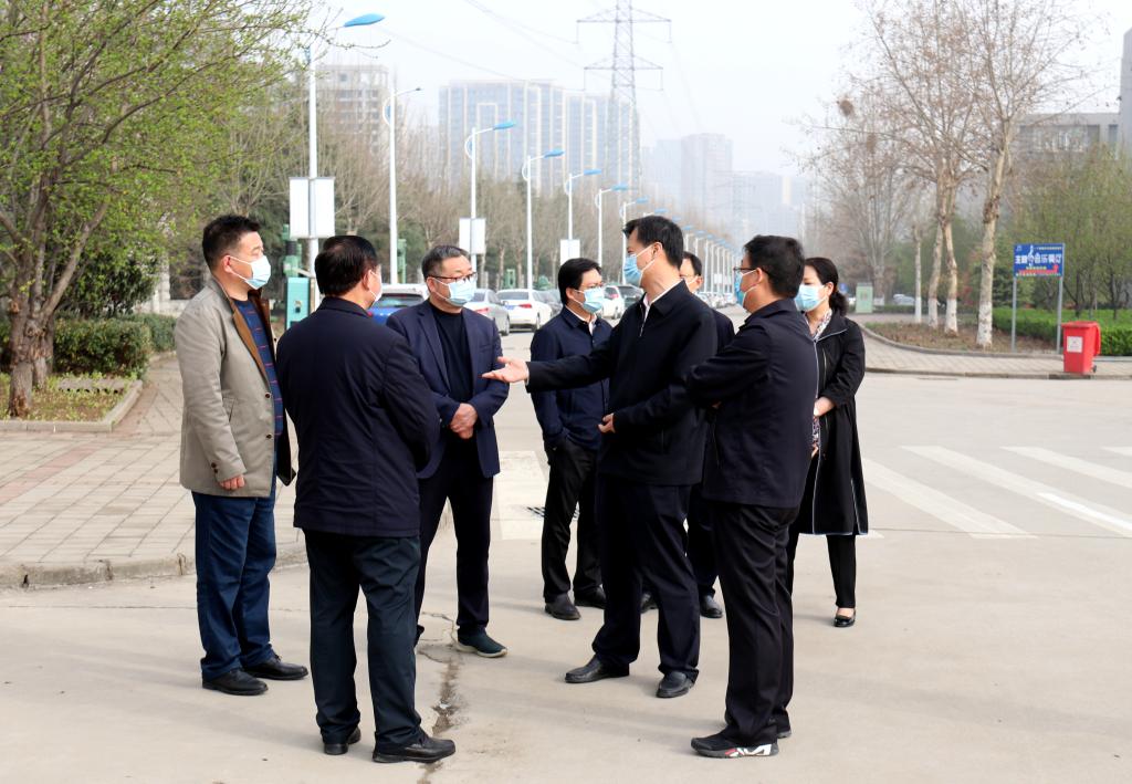 马正兰一行现场察看了学院大门、快递领取点、食堂、隔离点等地,详细询问了学院有关防控措施落实情况。彭占亭、杨德岭详细介绍了师生状况摸排和动态管理、防护物资储备、教学活动、应急预案等疫情防控工作。