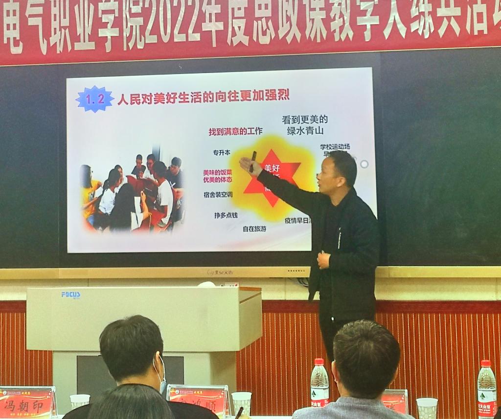 冯朝印在赛前发表讲话,他指出,举办思政课教师大练兵活动是深入学习贯彻习近平总书记在学校思想政治理论课教师座谈会上的重要讲话精神的具体实践。学院党委高度重视思想政治理论课教师队伍建设,也十分重视思政课教师的业务水平提升,希望参赛教师珍惜难得的展示自己教学技能的机会,赛出风格、赛出水平、相互切磋、共同提高,把大比武活动变成思想政治理论课教师教学技能展示的平台、教学技能交流的平台。同时要注重大赛成果的转化,将大比武活动的成果运用于日常的教育教学活动中,不断提升思政课堂教学质量和育人水平、育人能力,从而为区域发展培养更多高素质技能型人才。