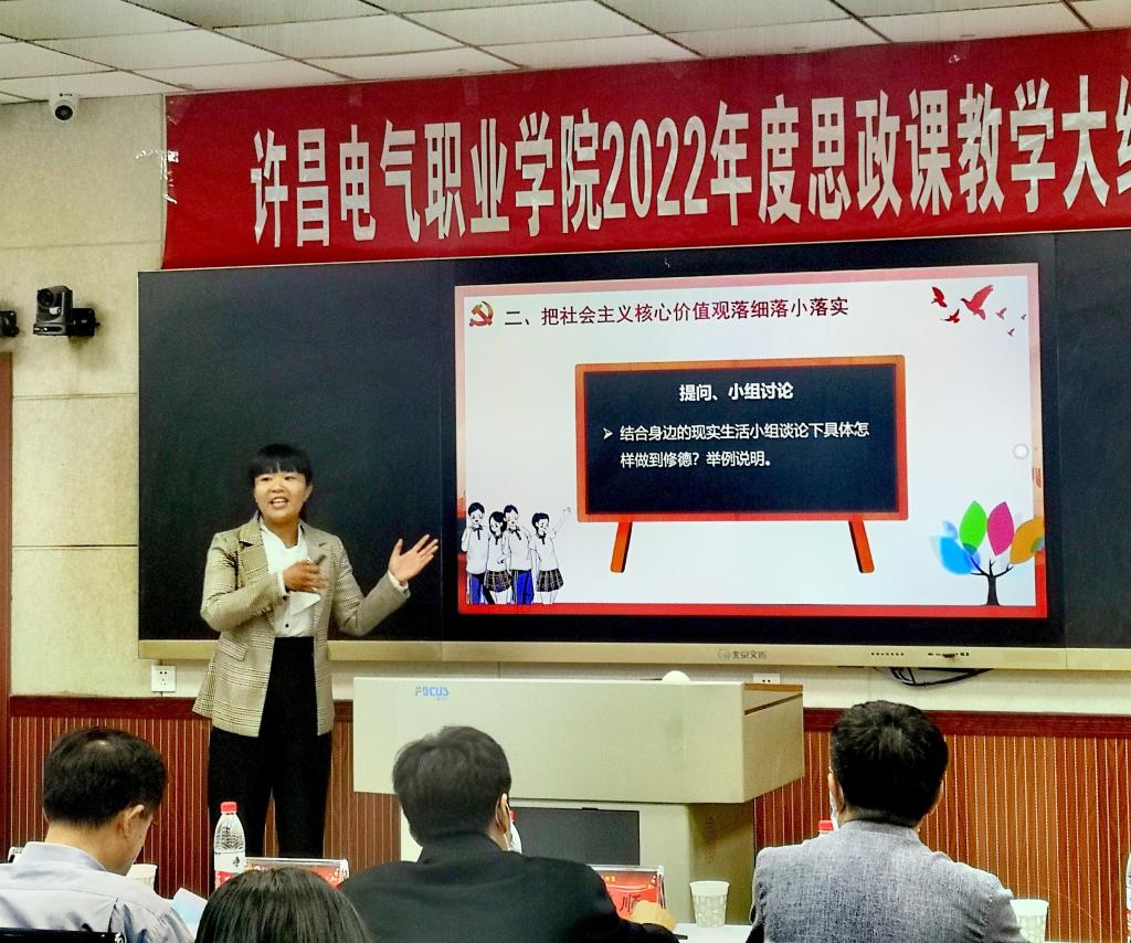 4月21日下午,我院2022年度思政课教学大练兵活动在实训楼A226录播教室进行。本次比赛特邀许昌学院马克思主义学院院长寇鸿顺教授、许昌职业技术学院思政部主任杨腾教授、许昌职业技术学院思政部教研室主任高新平副教授担任专家评委,我院副院长冯朝印、宣传部部长张国栋、公共教学部党总支书记郭雯、公共教学部主任李保茹担任大赛评委。