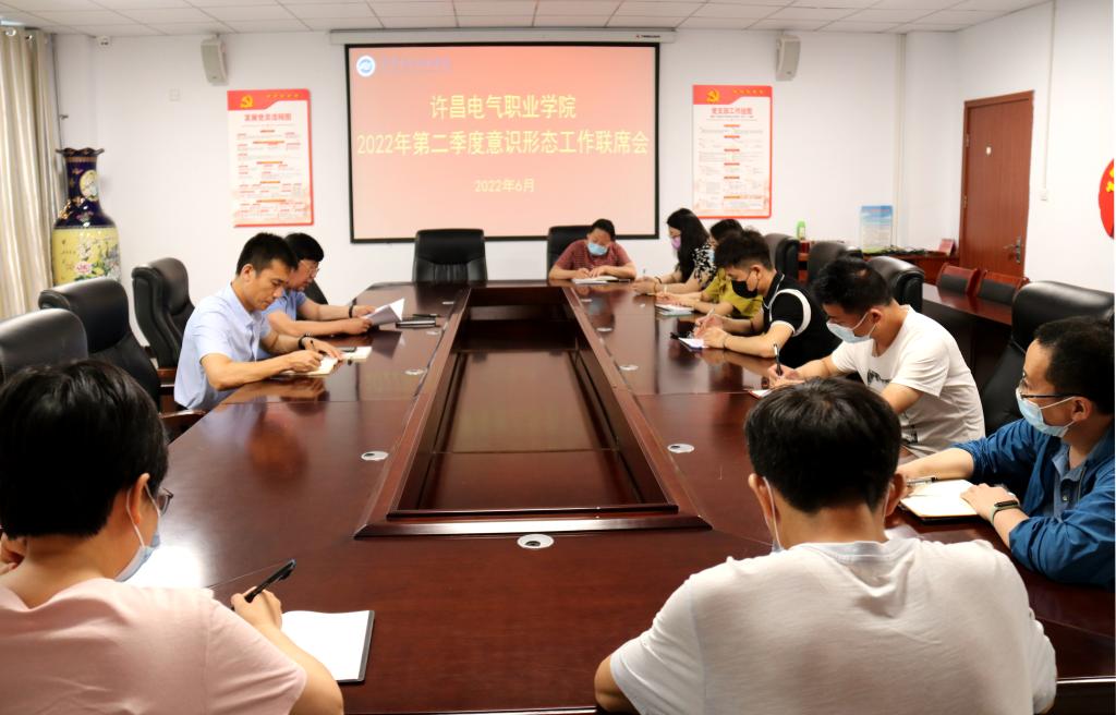 6月10日上午,我院在行政楼二楼第二会议室召开2022年第二季度意识形态工作联席会议,会议由党委宣传部部长张国栋主持,党委办公室、人事处、学生处、招生就业处、思政教研室、各教学系部等相关负责人参加会议。