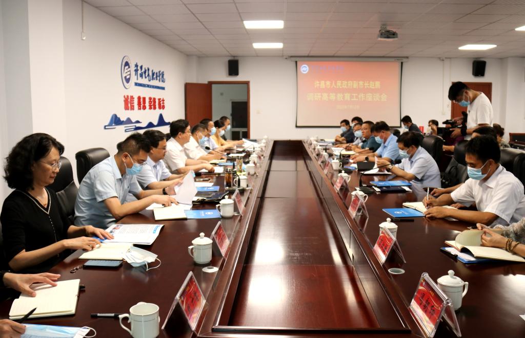7月12日下午,许昌市人民政府副市长赵鹏带领市政府办公室领导同志,市委编办、市财政局、市工信局、市人社局和自然资源和规划局分管负责同志,市教育局主要领导和分管领导等一行到我院调研指导高等职业教育发展工作并举行座谈会。院党委书记彭占亭,院长杨德岭,副院长商淑敏、刘涛、冯朝印,纪委书记张晓华以及相关处室负责人等陪同调研。