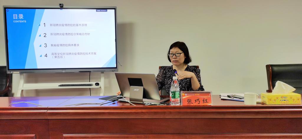 张巧红科长结合自己多年来在流行病防治工作中的专业实践和疫情防控一线工作的实战经验,深入浅出地为大家讲解流行病、传染病防治的科普知识和新冠肺炎疫情防控的基本原理,分析当前疫情防控形势,详细解读国家新冠肺炎疫情防控总策略总方针和省、市疫情防控的具体要求及工作规范,重点解读了《高等学校新冠肺炎疫情防控技术方案(第五版)》。
