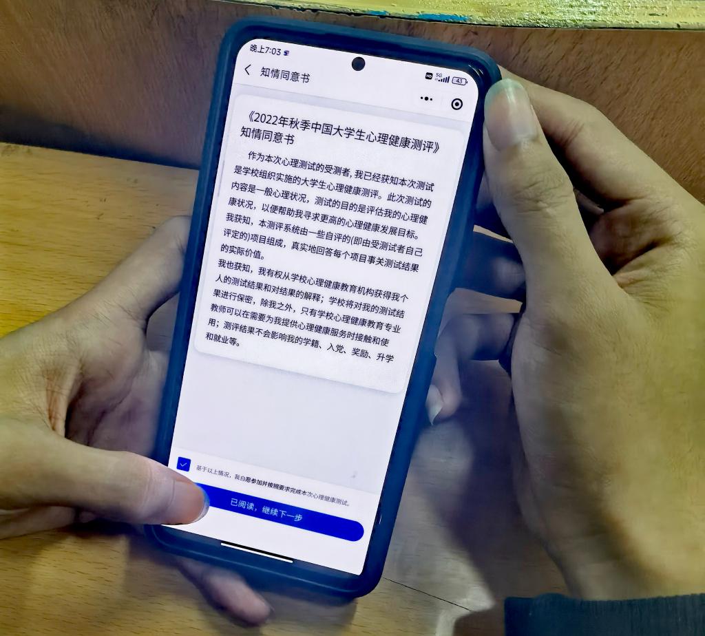10月27日-29日,公共教学部对全院5000余名大一新生开展心理健康测评。由各班班主任组织学生通过手机、电脑登录教育部指定官网平台进行网络测评。通过对问卷结果统计分析,及时掌握了解新生心理状态,综合评估潜在风险水平,以便进行重点干预和辅导。