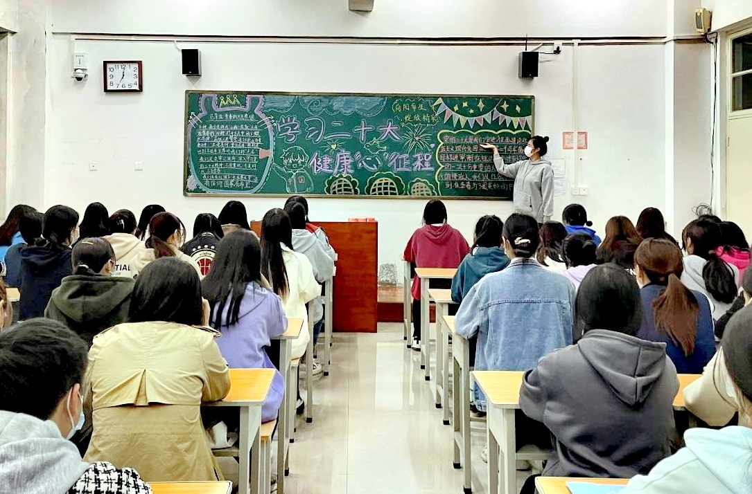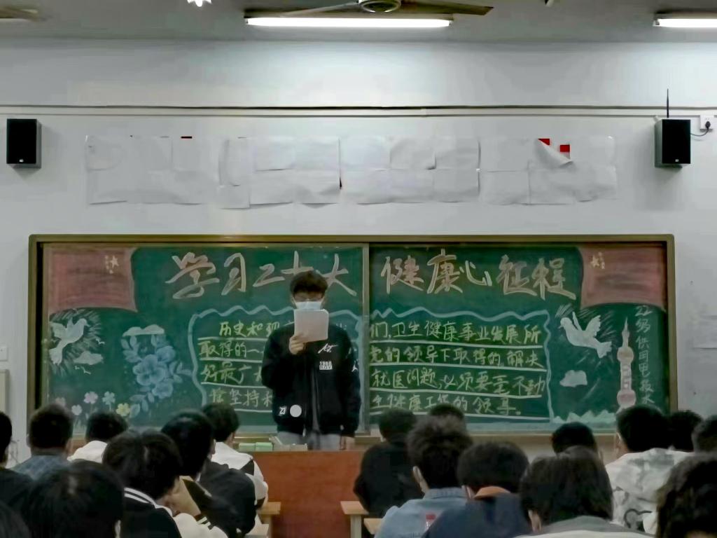 10月27日晚,院团委、各系组织各班召开以“学习二十大,健康“心”征程”为主题的团课,并制作黑板报,确保心理健康教育走深走实。