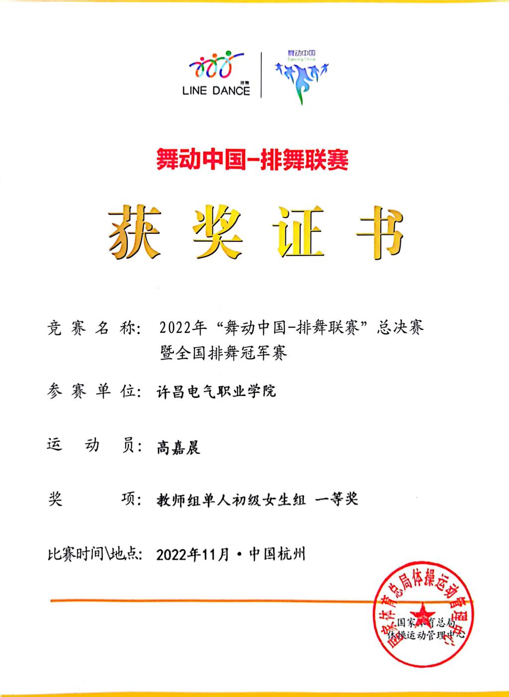 最终经过激烈角逐,公共教学部体育教研室教师高嘉晨线上参赛作品喜获教师组单人初级女生组一等奖,高嘉晨获“优秀教练员”荣誉称号。