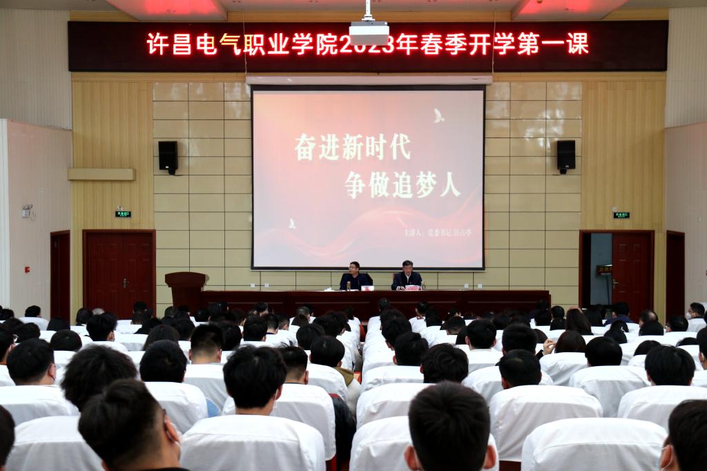 为深入贯彻习近平新时代中国特色社会主义思想和党的二十大精神,全面落实《关于新时代加强和改进思想政治工作的意见》,按照《中共河南省委高校工委办公室 河南省教育厅办公室关于组织全省学校上好2023年春季思政第一课的通知》要求,3月3日下午,党委书记彭占亭在第二学术报告厅为师生讲授“开学思政第一课”。会议由院长杨德岭主持,学院中层正职、各系团总支书记、专职辅导员、思政课教师及学生代表参加会议。