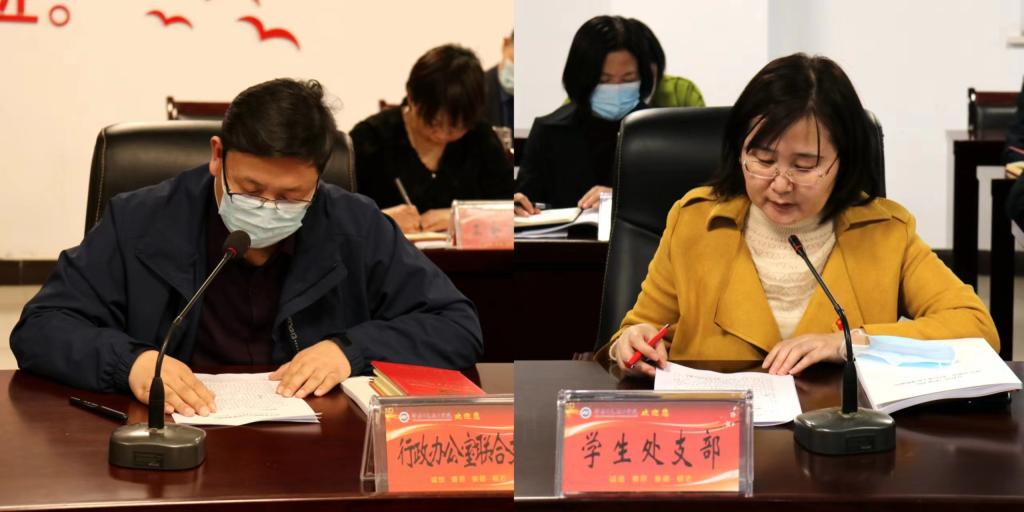 会上,党委办公室支部、组织部联合支部、行政办公室联合支部、学生处支部、机电工程系党总支、艺术系党总支、公共教学部党总支等7个单位党组织书记进行了现场述职,其他单位党组织书记提交了书面述职报告。党委书记彭占亭对各党组织党建工作进行了点评,肯定了成绩,指出了存在问题