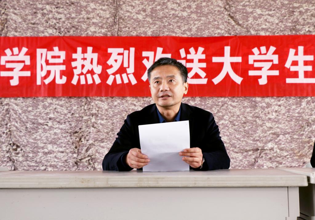朱东煜致欢送辞,他首先代表学院党委向全体新兵即将奔赴军营表示热烈祝贺。他指出,征集大学生应征入伍是加强国防建设重要组成部分,是学院贯彻党的教育方针,落实立德树人根本任务的重要体现,是同学们报效国家、磨砺人生实现理想的重要途径。为此,他代表学院党委向同学们提出五点希望:一要同学们尽快转变角色,时刻牢记国家和人民的利益高于一切,在部队这所 “大学校、大熔炉”里好好锤炼自己。二要牢记使命。要有扎根军营、建功立业的雄心壮志,只有牢记使命,训练起来才有力量,学习起来才有动力,工作起来才有干劲。三要努力拼搏。大家要尽快融入军旅生活,迅速投入火热的军营生活之中,刻苦训练、努力学习,使自己成为军队现代化建设的优秀人才,成为让亲人骄傲、家乡自豪的合格军人。四要自觉扛起维护国家安全的责任担当,把学院所学知识带到部队,展现新时代许电学子的精神风貌,把“读万卷书”与“行万里路”结合起来,使自己早日成为“听党指挥、能打胜仗、作风优良”的合格军人,争做“有灵魂、有本事、有血性、有品德的“四有优秀士兵”。五要忠于职守。自觉执行军队的《条令》、《条例》,听从指挥、服从命令,尊重首长、团结向上。要为校争光、为家乡添彩,圆满地完成党和人民赋予的神圣使命。