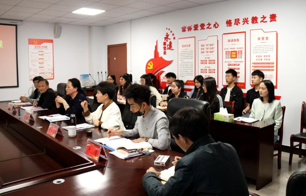 为深入学习贯彻党的二十大精神和习近平总书记关于思政课建设的重要论述,扎实推进高校思政课教育教学质量提升行动,按照省教工委、省教育厅安排,4月12日下午,省教育厅春季学期思政课“大听课 大调研”第十二组调研组、信阳师范学院马克思主义学院院长唐国战一行6人莅临我院,调研思政课建设情况并召开座谈会。会议由院党委副书记张明慧主持,思政部主任李保茹、副主任宋贵斌,思政教研室主任卢营及部分思政教师、学生代表参加座谈。