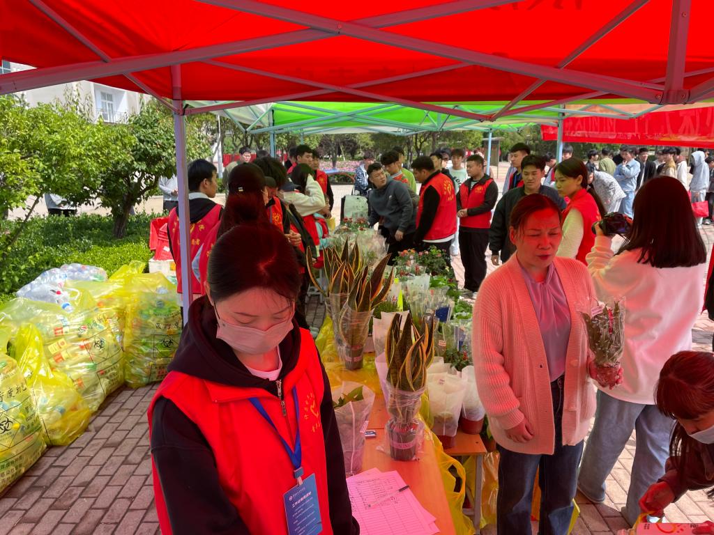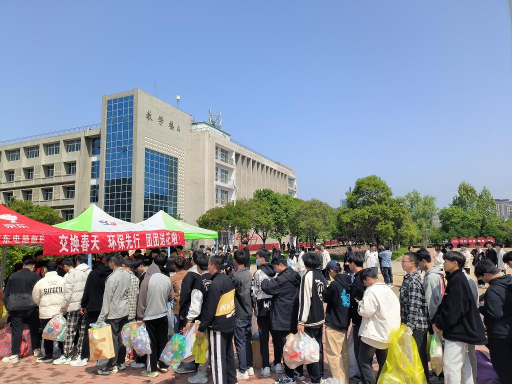 为全面贯彻落实习近平生态文明思想,引导广大青少年培养生态文明观念,参与植绿护绿实践,为美丽中国建设贡献青春力量。4月27日上午10点,在院学生会和青年志愿者协会的组织下,“交换春天,环保先行”绿植交换活动在教学楼A东门广场有序进行。活动现场气氛热烈,广大师生积极参与,用空塑料瓶换取相应绿植,该活动得到广大师生一致好评。