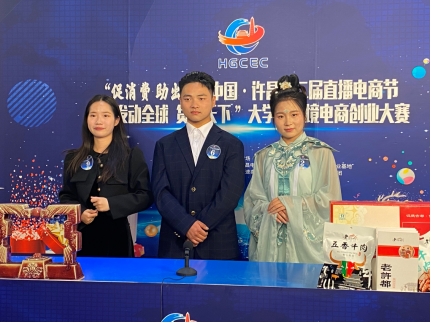5月7日,“促消费 助出口”中国·许昌第二届直播电商节暨“发动全球 货通天下”大学生跨境电商创业大赛决赛隆重举行。学院艺术系播音主持专业学生杨敬超、张文洁分获冠亚军。