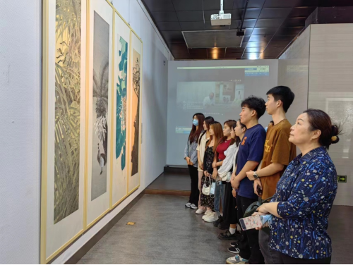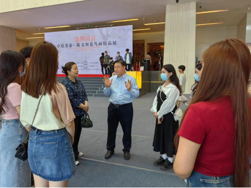 5月18日上午,由许昌市委宣传部、河南美术家协会、许昌市文化广电和旅游局联合举办的“盛世清音——中原名家陈文利花鸟画精品展”开幕式在许昌市博物馆举行,院长杨德岭受邀参加开幕式,艺术系党总支书记董淑红带领艺术系设计专业部分师生到场观展学习。
