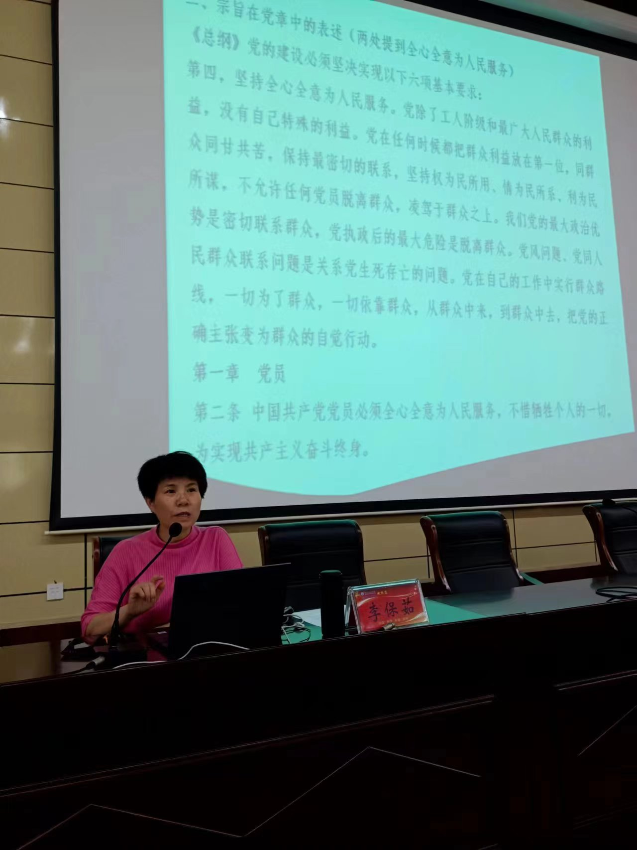 杨帅对本次培训班培训目标、授课方式、课程安排、纪律要求等相关事宜作详细安排,并对培训期间所有学员提出了明确的纪律要求。她要求学员们严格要求自己,认真学、深入学,勤于思考、积极交流、学有所获,争取早日加入党组织。