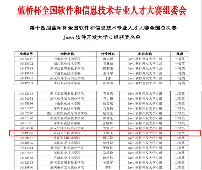 “蓝桥杯”软件大赛分为省赛和国赛两个阶段。第一阶段省赛,信息工程系参加比赛的十余名同学获奖,其中一等奖5人,并进入国赛;第二阶段国赛,教师任晓鸽等指导学生王鹏飞、李梦茹、樊迎迎获国赛二等奖,胡晓荣获国赛三等奖,司梦真获国赛优秀奖。