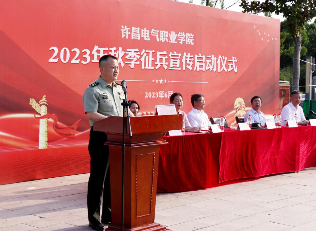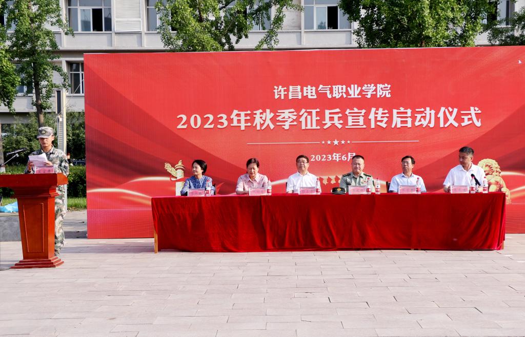 6月13日下午,学院在学院广场举行了2023年下半年征兵宣传启动仪式。院党委书记彭占亭、魏都区人武部上校部长李发扬、院党委副书记张明慧、工会主席张贵军、副院长商淑敏出席活动。仪式由副院长朱东煜主持。