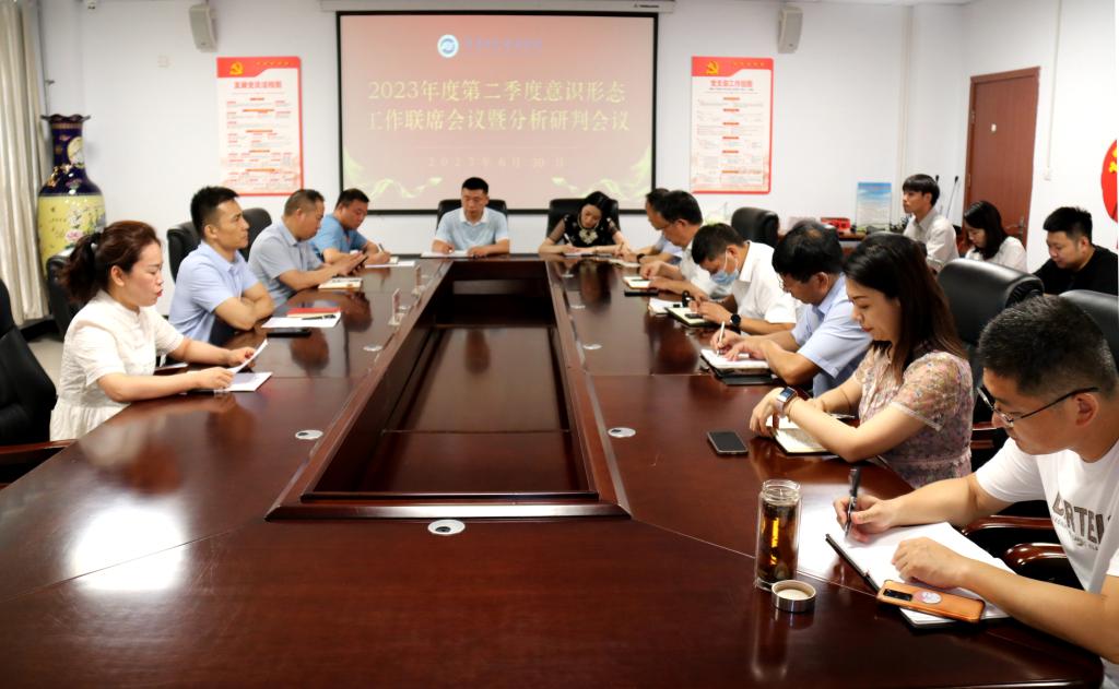 6月30日上午,我院在行政楼第二会议室召开2023年度第二季度意识形态工作联席会议暨分析研判会议。党委委员、组织部部长张杰伟,党委委员、宣传部部长张国栋出席会议,院属各单位意识形态工作主要负责人参加会议。会议由宣传部副部长王德真主持。
