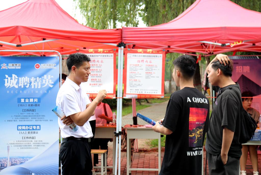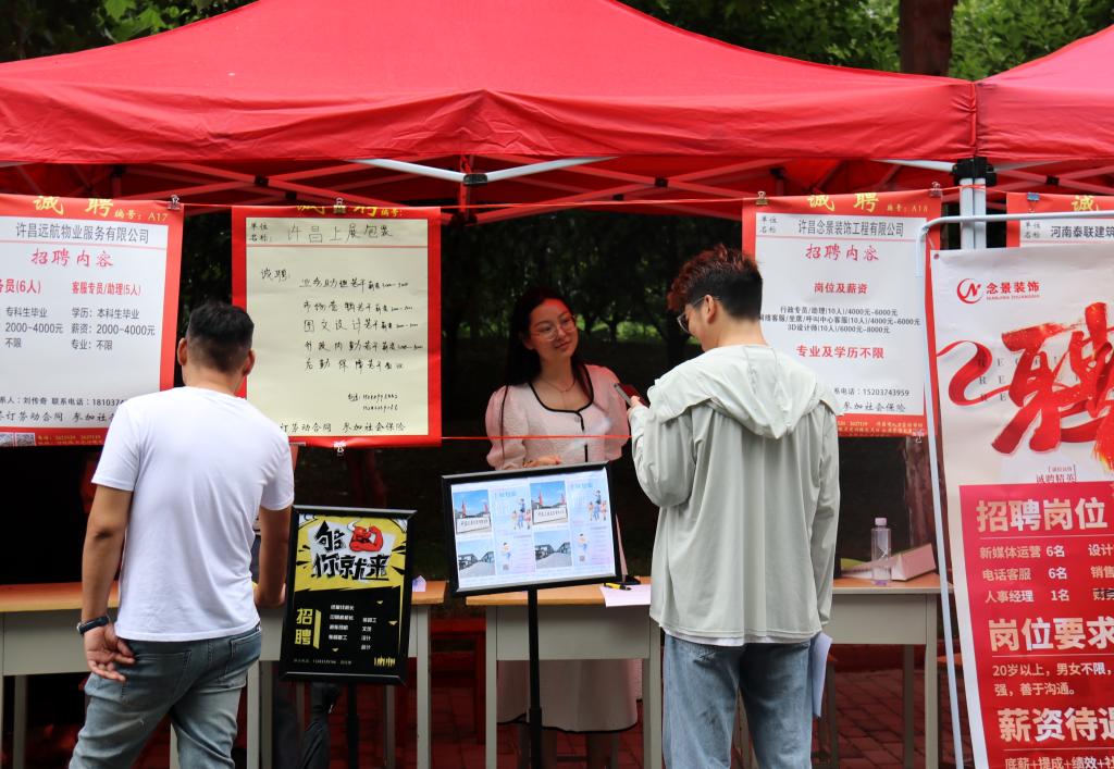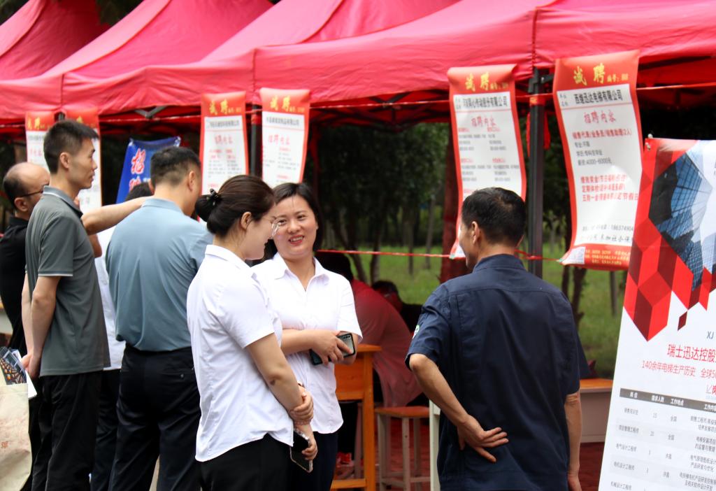 为全面贯彻党的二十大精神,认真落实党中央、国务院和省委省政府关于促进大学生就业工作的决策部署,搭建学校、企业、学生沟通交流合作平台,保证学生高质量充分就业,6月29日,“职引未来 职在河南 百日冲刺 筑梦青春”许昌市2023届毕业生双向选择洽谈会许昌电气职业学院专场在我院成功举行。院党委书记彭占亭,党委副书记张明慧,工会主席张贵军,副院长商淑敏,纪委书记张晓华,副院长朱东煜、张俊才到场指导工作。
