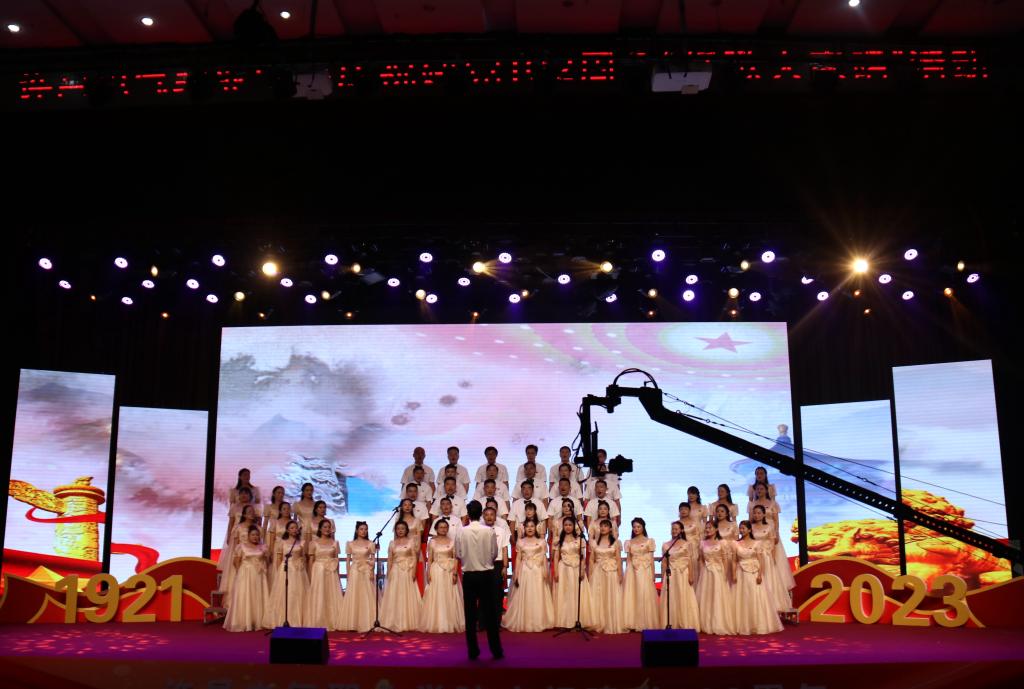 “我们迎着出生的太阳,走在崭新的道路上……”随着音乐响起,第一合唱队带来的大合唱《走向复兴》为红歌比赛拉开序幕。《我的中国心》《灯火里的中国》《向往》《我们走在大路上》《我和我的祖国》《没有共产党就没有新中国》《歌唱祖国》《让世界充满爱》《歌唱祖国》……来自全院35个部门的教职工组成的5支参赛队带来了一场红色音乐盛宴。比赛精彩纷呈、提振人心,一曲曲耳熟能详的红色歌曲表达着对党的深情祝福和对祖国的无比热爱,充分展现了我院教职工奋进新时代的精气神。