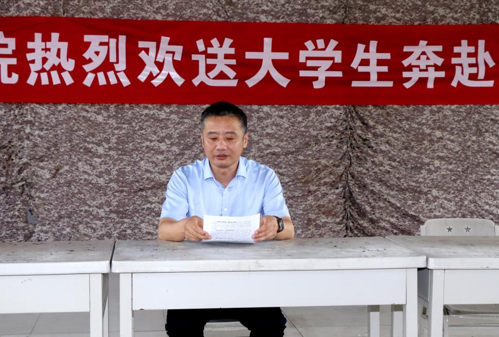 窗朱东煜致欢送辞,他首先代表学院党委及全体师生向应征入伍的同学们表示热烈祝贺。他指出,应征入伍的同学们能经过层层选拔实现入伍愿望,一定要加倍珍惜军旅生涯,坚定从军报国之心。对同学们提出三点希望:一是听党指挥、服从命令。时刻牢记国家和人民的利益高于一切,在部队这所 “大学校、大熔炉”里好好锤炼自己。二是牢记使命、努力拼搏。自觉扛起维护国家安全的责任担当,使自己成为军队现代化建设的优秀人才,成为让家乡自豪、亲人骄傲的合格军人。三是忠于职守、苦练本领。使自己早日成为“听党指挥、能打胜仗、作风优良”的合格军人,争做“有灵魂、有本事、有血性、有品德的“四有优秀士兵”。