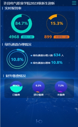 智慧迎新平台的大数据分析动态呈现,学院领导及相关部门负责人均可通过移动端实时掌握报到数据,实现高效率工作调度。