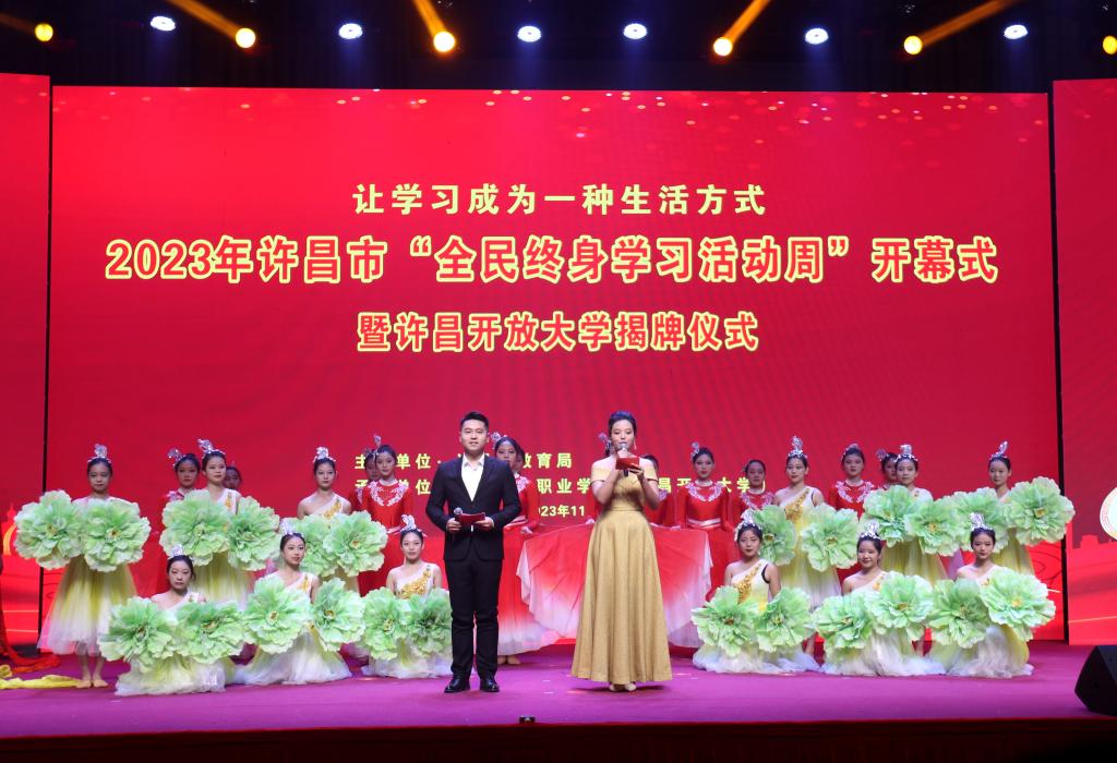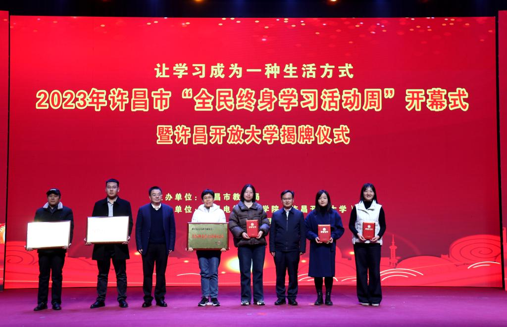 11月14日,2023年许昌市全民终身学习活动周开幕式暨许昌开放大学揭牌仪式在我院举行,市政府副市长赵鹏、河南开放大学校长孙斌、许昌电气职业学院党委书记彭占亭出席。