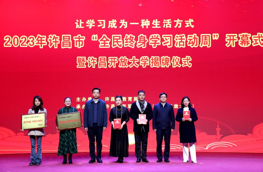 与会领导为2023年河南省终身学习品牌项目、2023年全省百姓学习之星、2023年许昌市终身学习品牌项目、2023年许昌市百姓学习之星颁奖
