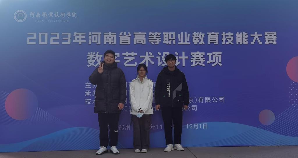 12月1日,由河南省教育厅主办的2023年河南省职业院校技能大赛(高职组)“数字艺术设计”赛项在河南职业技术学院顺利举行,由信息工程系李红亚、宋尚霖老师指导的李璟皓、苏凯歌、汪莹莹参赛队,经过激烈角逐,荣获二等奖。