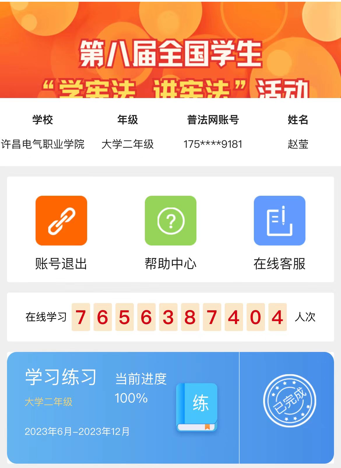 10月,实施“宪法卫士”行动计划。依据教育部全国青少年普法网“宪法卫士”专栏页面发布的活动流程与指南,引导我院在校大学生积极参加第八届全国学生“学宪法 讲宪法”网上学习和“宪法卫士”行动计划。学生进行注册,完成练习和答题,力争学习教育广覆盖,见实效。