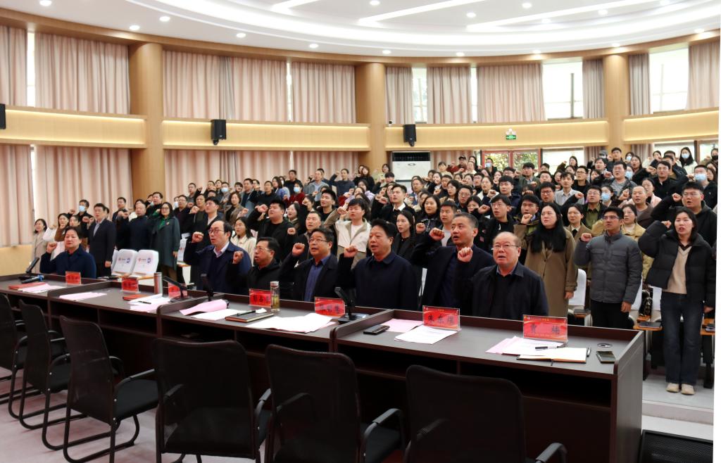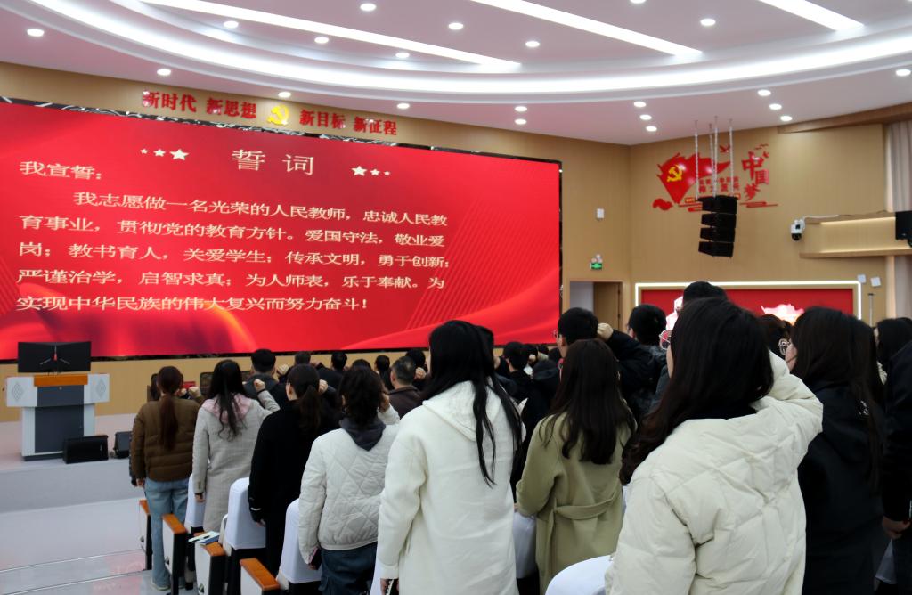 会议期间,党委副书记张明慧宣读了新进工作人员录用文件,对新进教师毕业院校及所学专业进行了逐一介绍,带领全体参会教职工进行了宣誓;副院长张俊才宣读了“弘扬践行教育家精神”活动实施方案及工作要求;青年教师代表韩基伟、新入职教师代表杜彤彤进行了交流发言。