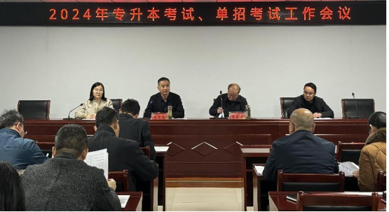 3月25日下午,我院在行政楼第三会议室召开2024年专升本、单招工作会议。副院长张俊才出席会议,党委办公室、行政办公室、宣传部、纪委及相关部门和系部主要负责人参会,会议由副院长朱东煜主持。