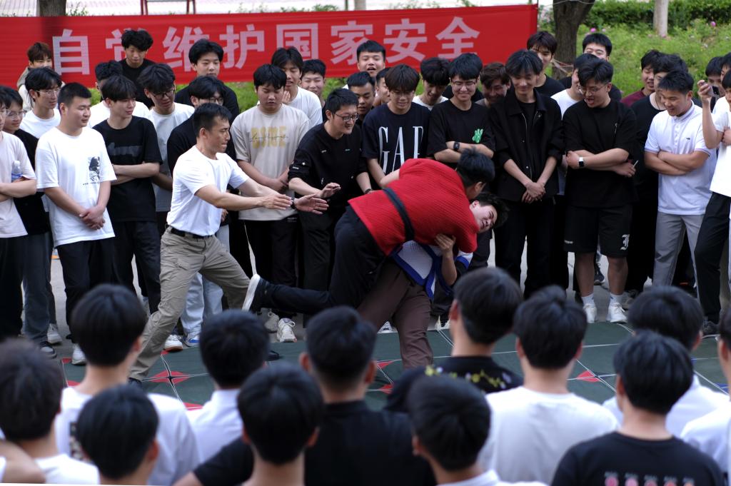 为深入开展爱国主义教育,进一步加强入党积极分子培养,增强学生国防意识,弘扬学生爱国主义精神,4月24日下午,党委委员、宣传部部长张国栋在教学楼A东侧为机电工程系本期入党积极分子开展国防教育户外课暨军事心理行为拓展训练。