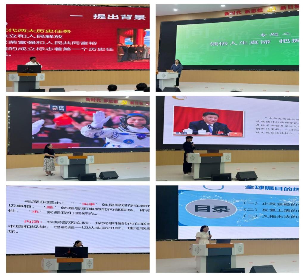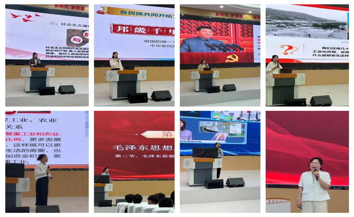 本次比赛共有17名思政课教师参加,以课程组随机抽签的顺序依次进行。参赛教师按照参赛的章节题目,紧紧围绕课程目标,灵活运用案例式、启发式、互动式教学方法和现代化教学手段,进行现场无生授课,充分展现思政课教师坚定的政治信仰、扎实的教学功底、良好的精神风貌和端正的教学态度。
