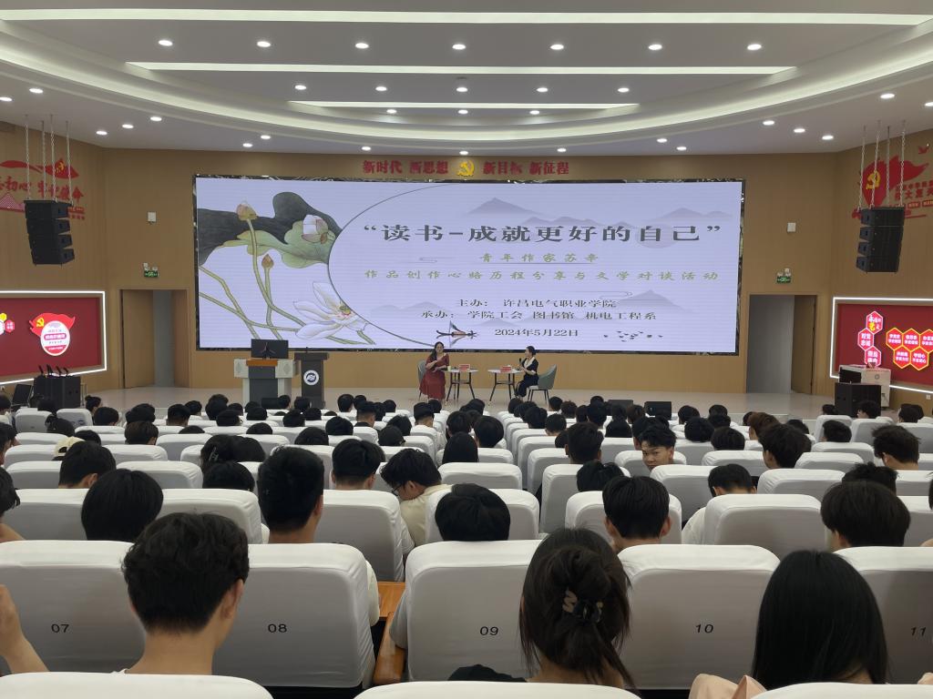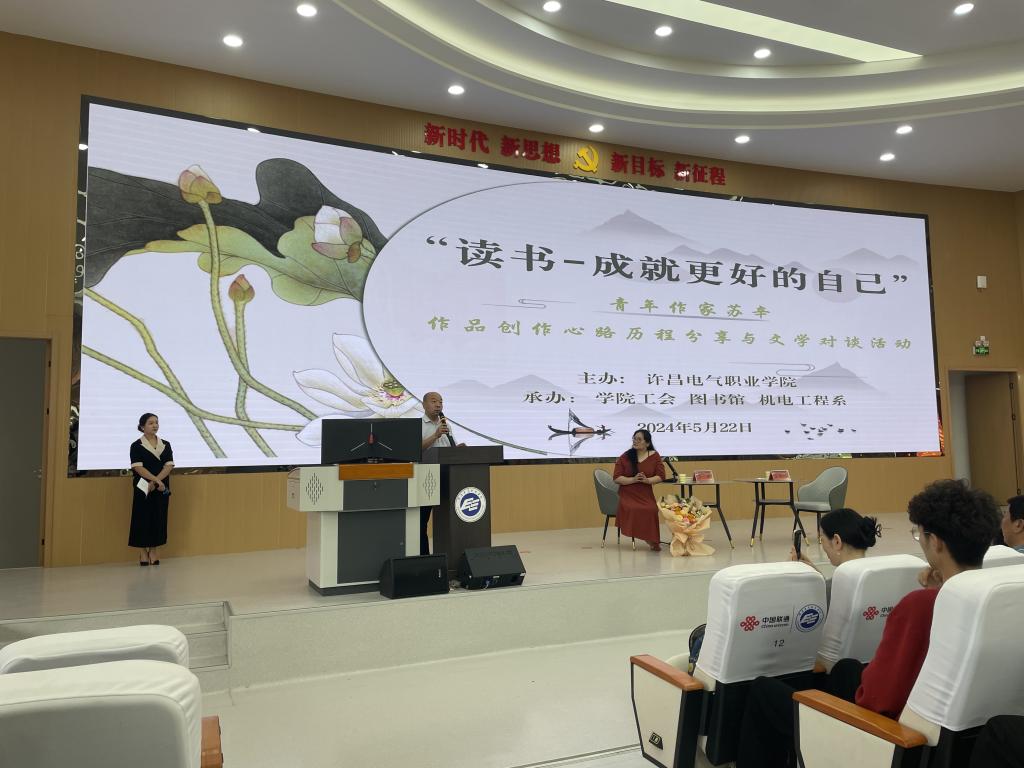 为弘扬尊重知识、崇尚文明的阅读理念,深入推进“全民阅读”活动,激发我院师生阅读兴趣,持续养成爱读书、读好书、善读书的良好习惯,营造良好书香校园文化氛围,5月22日,我院在VR思政教室举办了一场主题为“读书-成就更好的自己”的“暖心”读书会。青年作家苏辛进行作品创作心路历程分享,并展开文学对谈。学院工会、图书馆和机电工程系师生代表齐聚一堂,共同聆听这场读书盛宴。